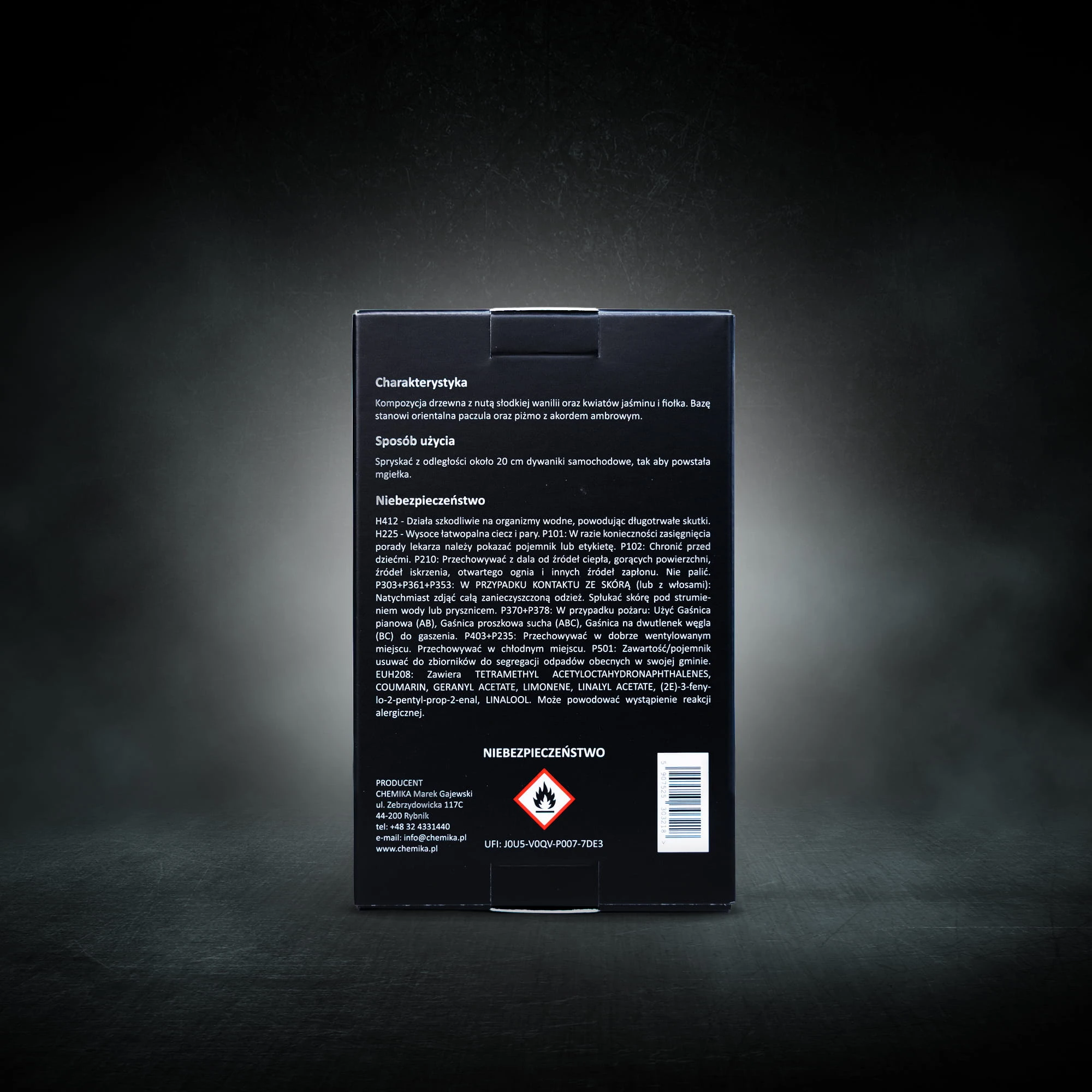Luksusowy zapach do wnętrza auta Chemika Car Perfume to eleganckie perfumy samochodowe o wyjątkowej kompozycji zapachowej. Połączenie nut drzewnych, słodkiej wanilii oraz kwiatów jaśminu i fiołka tworzy harmonijny, przyjemny i trwały aromat, który nadaje wnętrzu Twojego samochodu wyjątkowego charakteru.