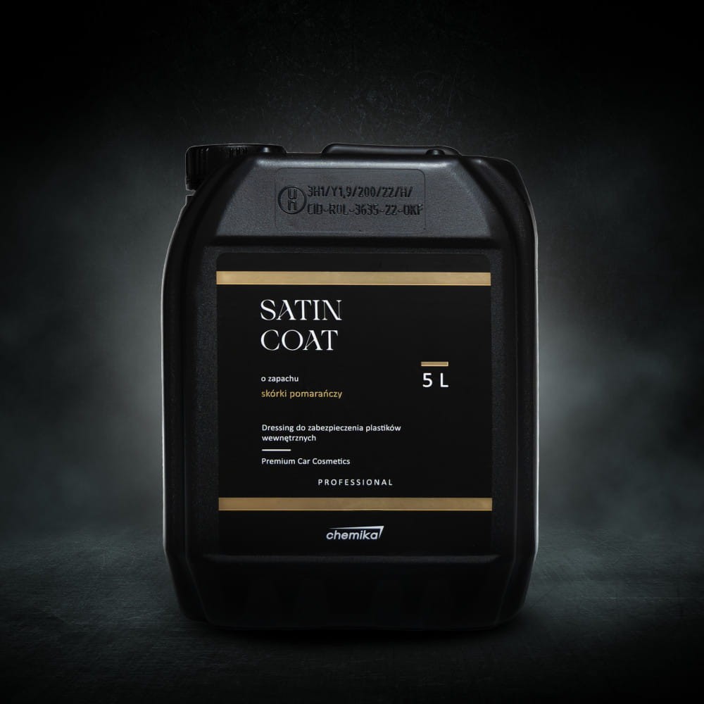 CHEMIKA Satin Coat to wydajny spray do wnętrza samochodu, którego zadaniem jest tworzenie ochronnej satynowej powłoki antystatycznej o zapachu skórki pomarańczy. Wersja pięciolitrowa została stworzona z myślą o profesjonalnym zastosowaniu