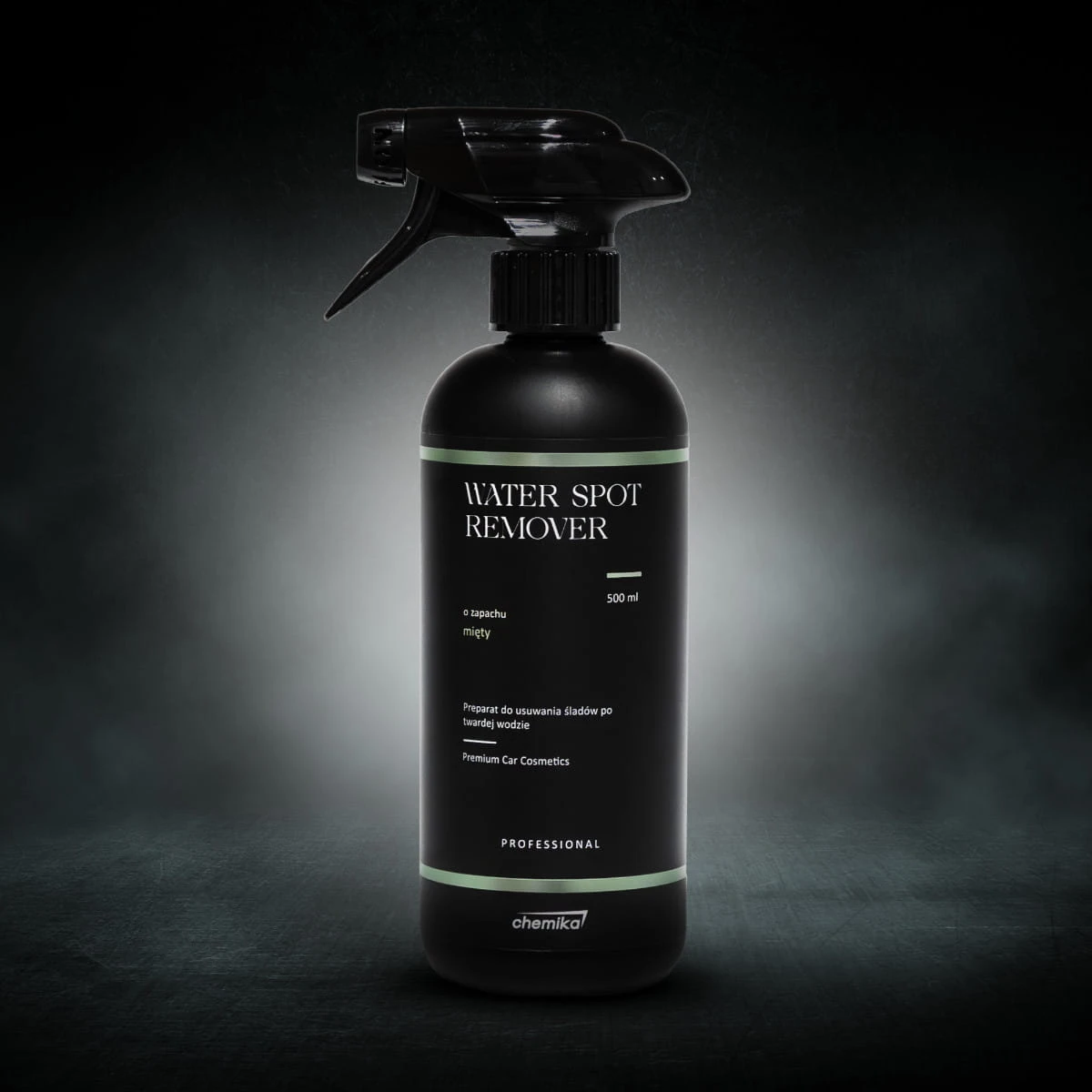 CHEMIKA Water Spot Remover to profesjonalny środek do usuwania zacieków i plam po twardej wodzie z lakieru samochodowego i szyb. Dzięki zaawansowanej formule na bazie silnych kwasów, skutecznie rozpuszcza kamień, przywracając powierzchniom idealną czystość i blask. Produkt wyróżnia się przyjemnym miętowym zapachem, co sprawia, że jego użycie jest komfortowe nawet przy intensywnej pracy.