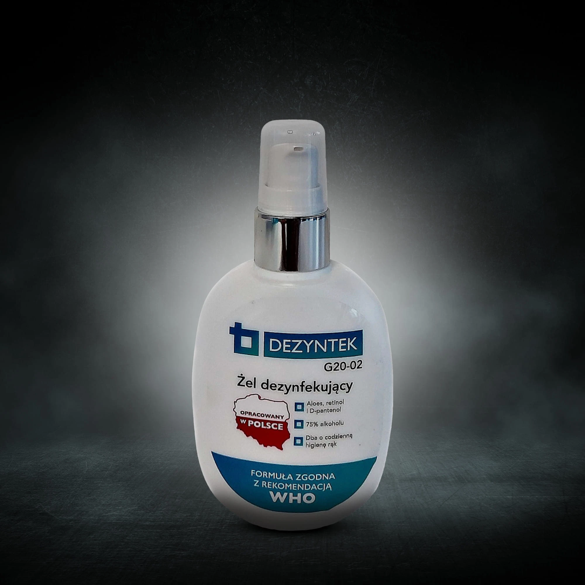 Żel do higienicznej dezynfekcji rąk i stóp o działaniu wirusobójczym (w tym wobec koronawirusa), bakteriobójczym, grzybobójczym. Zawartość alkoholu etylowego 75% v/v, tj. 67,8 g/100 g preparatu oraz dodatek substancji wspomagających działanie biobójcze zapewnia bardzo dobre działanie dezynfekujące. Dodatkowo zawiera składniki działające ochronnie na skórę, zmniejszając efekt wysuszenia oraz podrażnień.